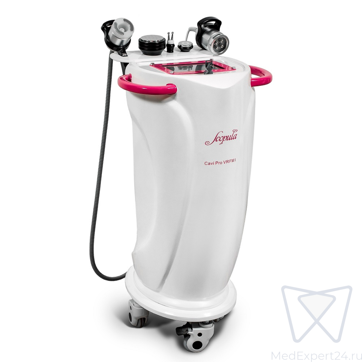 Scopula CaviPro VRFM I система, сочетающая в себе несколько воздействий: УЗ-кавитацию, радиолифтинг для лица и тела, RF-воздействие в сочетании с вакуумом и микротоки. За счет своей многофункциональности аппарат отлично подходит для покупки как в салоны красоты, так и в небольшие косметологические кабинеты.