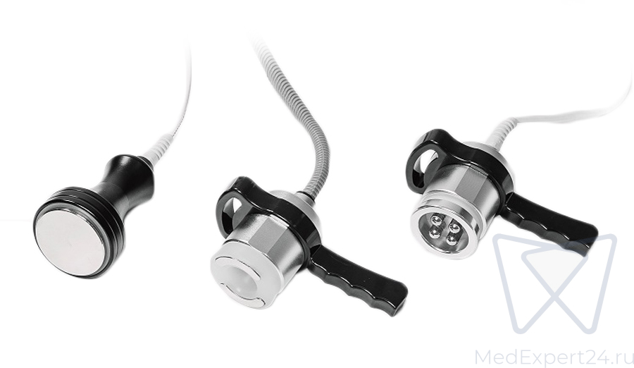 | 1. Манипула для биполярного радиочастотного лифтинга по лицу. | 2. Руковятка для вакуумного массажа с функцией RF-лифтинга | 3. Манипула для мультиполярного радиочастотного лифтинга по телу. | 4. Насадка для проведения процедур УЗ-кавитации. | 5. Интерференционная насадка для проведения микротоковой терапии лица и тела. |