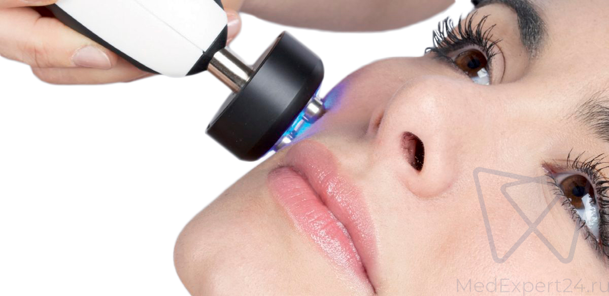 ![]() | Тетраполярная насадка с хромотерапией для воздействия на область лица. |