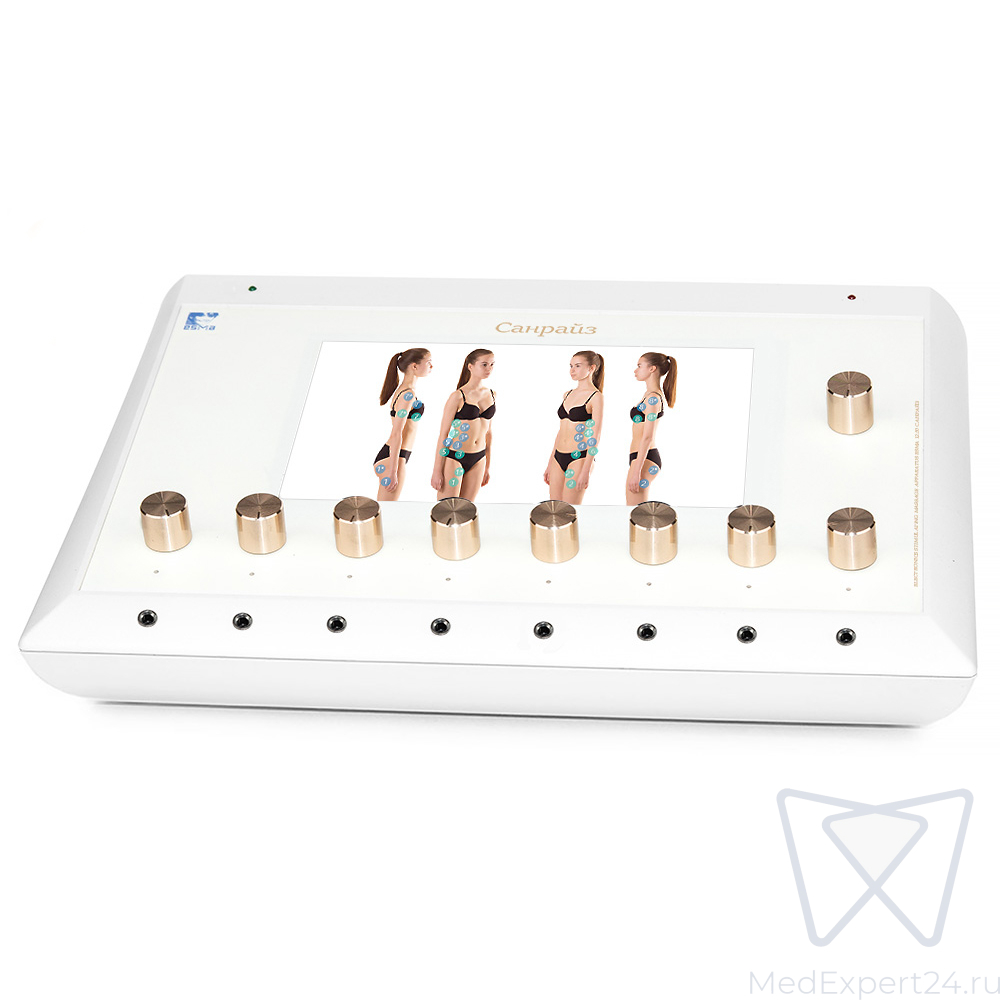 Аппарат сочетает в себе достоинства моделей Галант и Ревиталь. Используется для миостимуляции, липолиза, дренажа, миолифтинга, микротоковой терапии и электрофореза