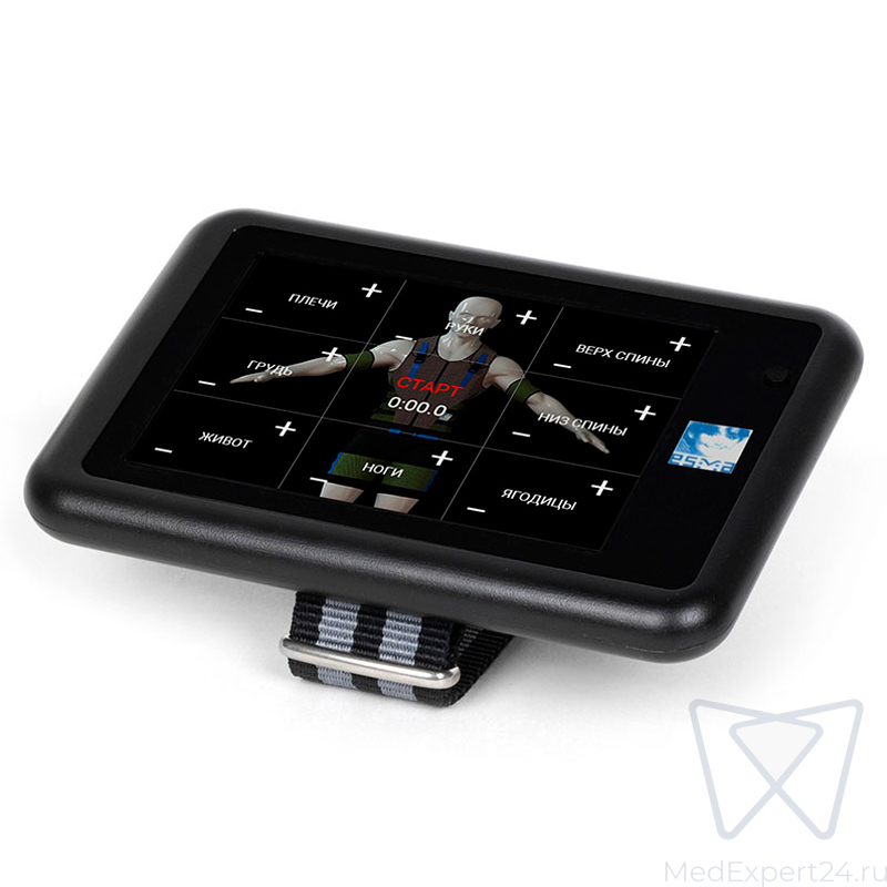 - Портативное управляющее устройство ЭСМА 12.06.08 Run удобно крепится на руке. Благодаря сенсорному экрану и интуитивно понятному ПО вы сможете легко подобрать необходимую программу нагрузки.