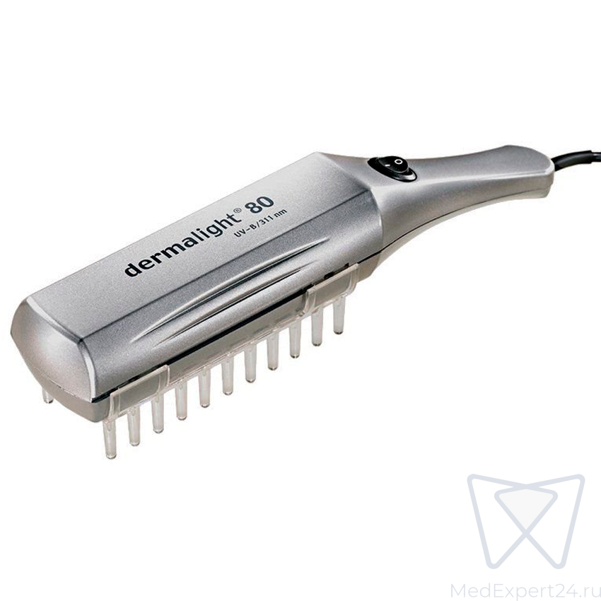 Dermalight 80 это высококачественный немецкий прибор для диагностирования грибковых поражений кожного покрова, трихофитий, воспалений и иных подобных заболеваний. Изделие с металлической рукояткой излучает невидимый ультрафиолетовый свет.