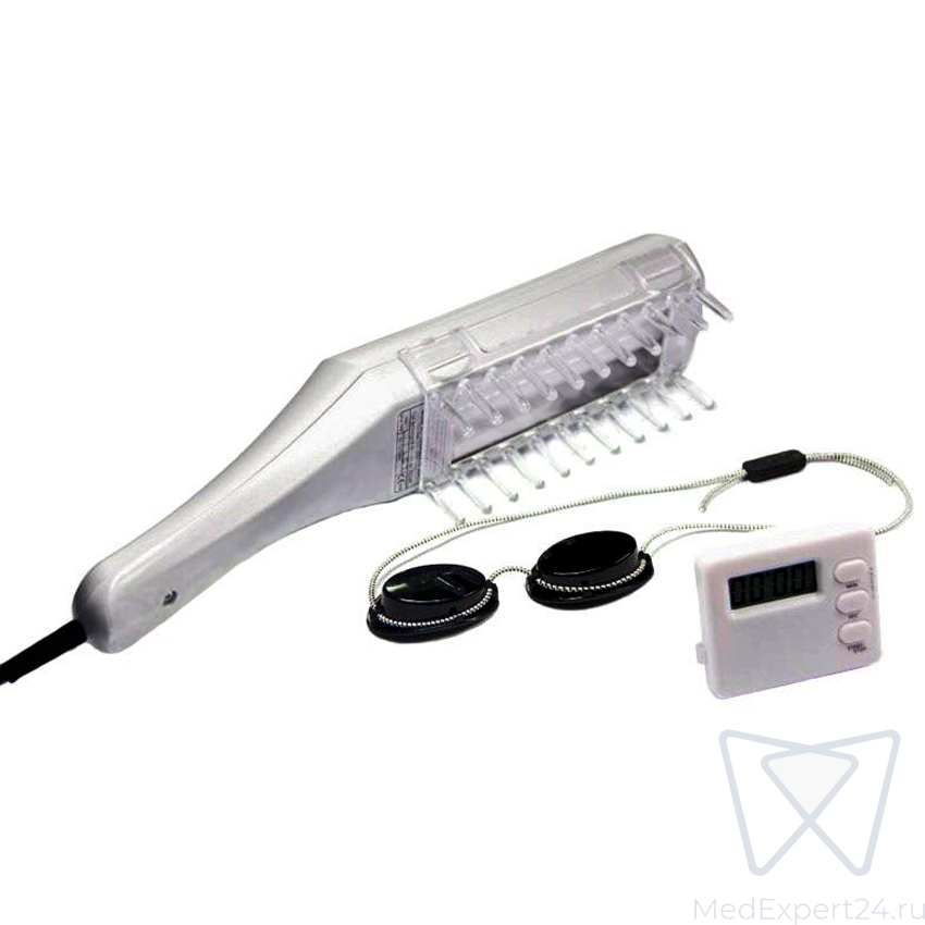 - Благодаря наличию расчески с закругленными светопроводящими зубцами облегчен процесс облучения волосистой части головы,