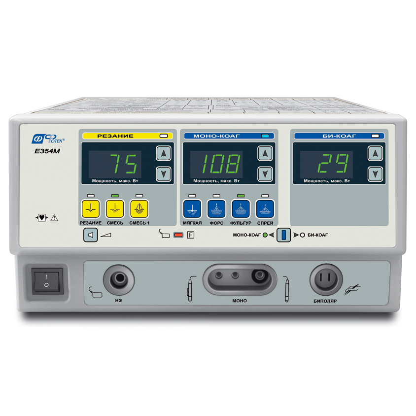 - Возможность настройки трех режимов одновременно: монополярного резания, монополярной и биполярной коагуляции,