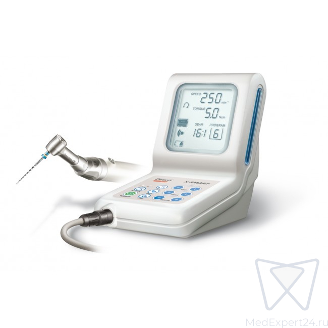 Компактный эргономичный эндомотор X-Smart (Икс-Смарт) - детище всемирно известного производителя стоматологического оборудования, английской компании Dentsply. Устройство оснащено электронным типом управления и механической составляющей - угловым наконечником 16:1 для установки файлов (насадок) из никель-титановых сплавов.