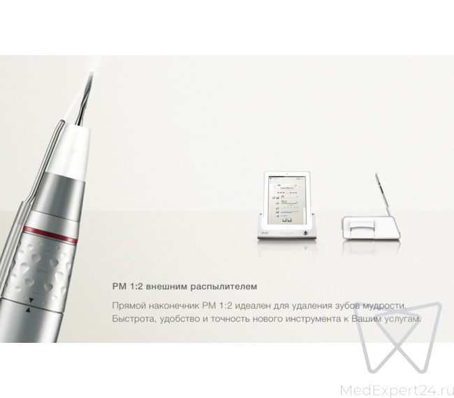 ![]() | Более простые операции. Простое изменение параметров рабочих операций: частоты вращения, крутящего момента, направления вращения, производительности ирригационной системы, записи данных и т. д. Постоянный доступ к историям болезни пациентов. |