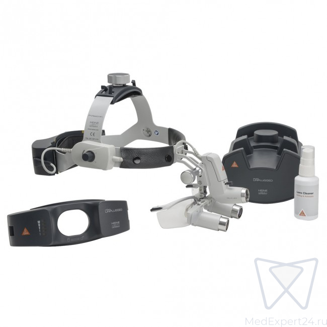 Heine ML4 LED HRP 3.5x - налобный светодиодный осветитель ML4 LED в комплекте с бинокулярными лупами HRP 3,5x и защитным щитком S-Guard | Heine