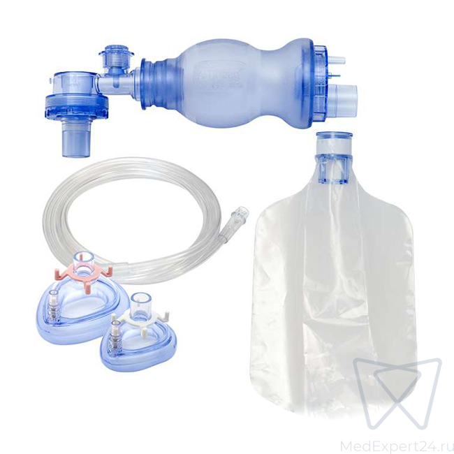AERObag - неонатальный ручной аппарат ИВЛ (мешок Амбу), объём 280 мл, две маски, размеры 0 и 1, ПВХ, одноразовый | HUM GmbH