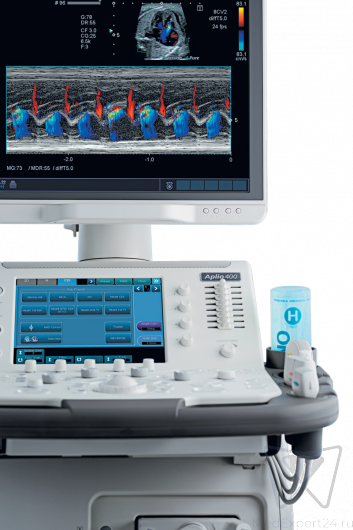 Canon (Toshiba) Aplio 400 - аппарат УЗИ экспертного класса, обеспечивающий удивительно четкое изображение, превосходную производительность и эргономичное рабочее место с полностью настраиваемой консолью.