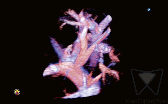 - С помощью функции Fly Thru можно исследовать объёмные образования путем навигации по реконструированным полостям и сосудам,
