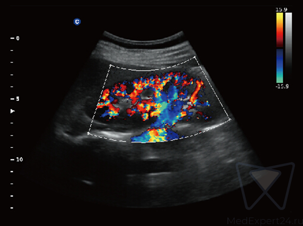 - Q-Flow специализированный режим для оценки образований и органов с высокой васкуляризацией. Чувствительнее чем стандартный цветной допплер.