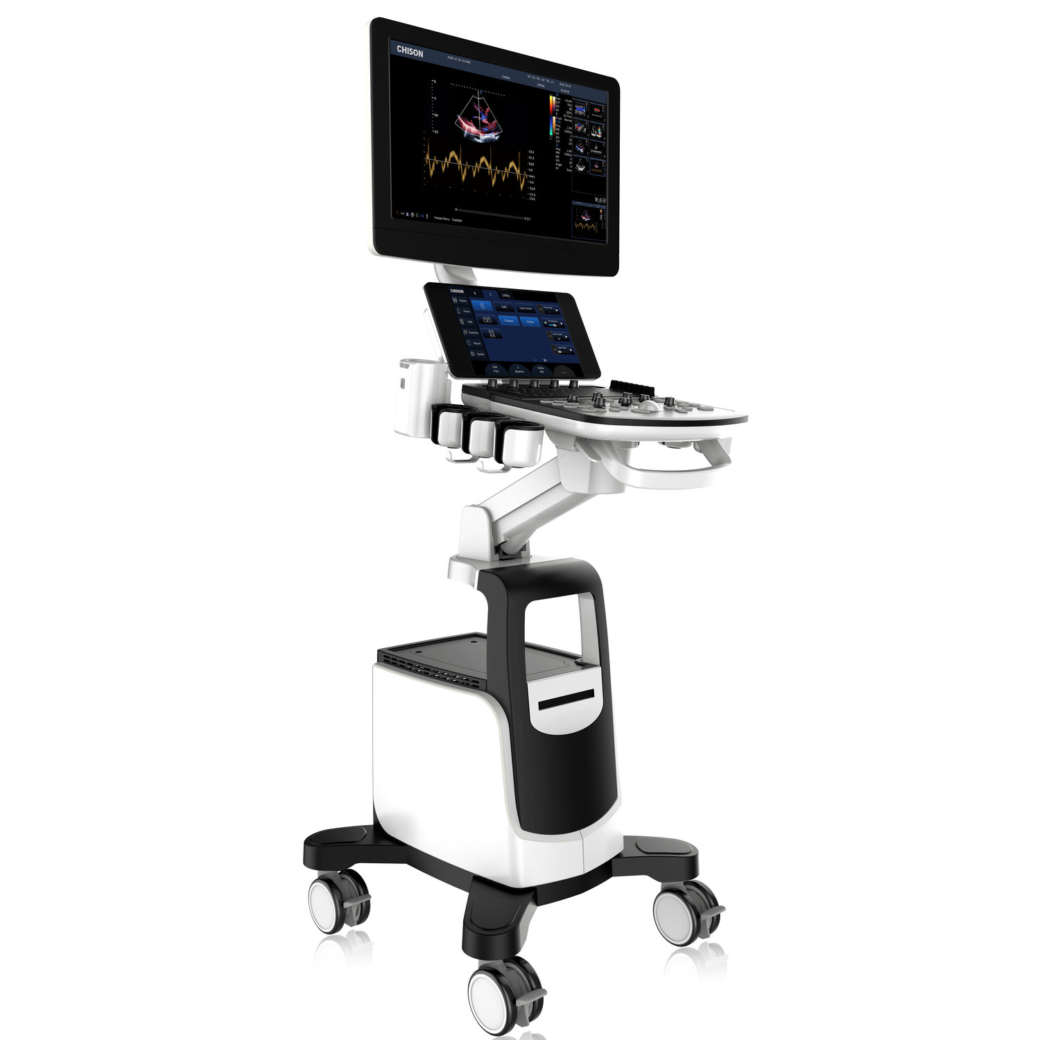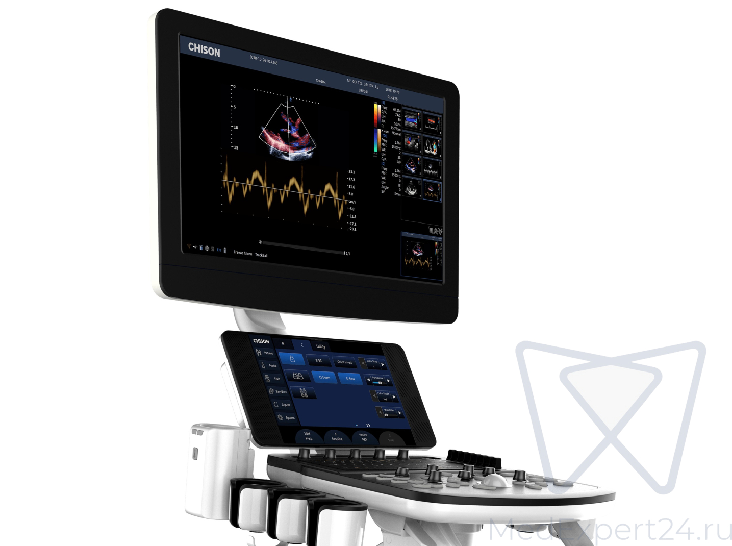 4 активных порта для датчиков позволяют подключить весь набор датчиков к аппарату и переключать их с кнопки на панели управления УЗИ аппаратом. Традиционно эргономичная панель управления CHISON поможет добраться до практически любой функции за одно нажатие.