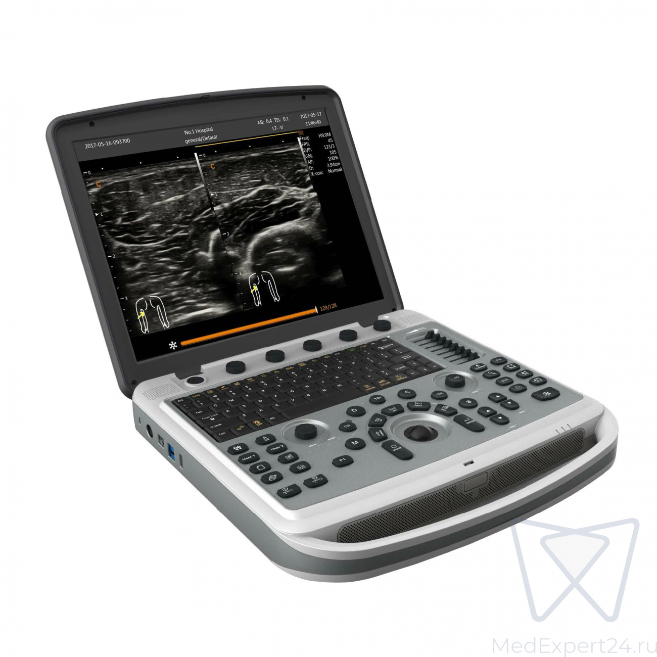 Переносной ультразвуковой апппарат УЗИ среднего класса с поддержками всех типов допплера. Применим для акушерства, гинекологии, урологии, ангиологии, маммологии, кардиологии, ортопедии, педиатрии, неонатологии, нейросонографии, медицины катастроф, спорта, ветеринарии, биопсии и т.п. Выполнен в форме ноутбука с весом до 5.5 кг. ЖК монитор 15' с антибликовым покрытием и функцией расширения ультразвукового изображения на весь экран без полей.