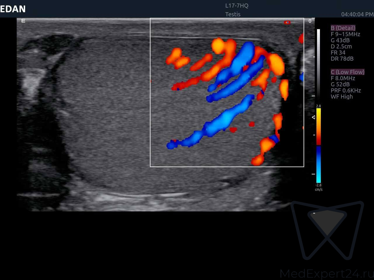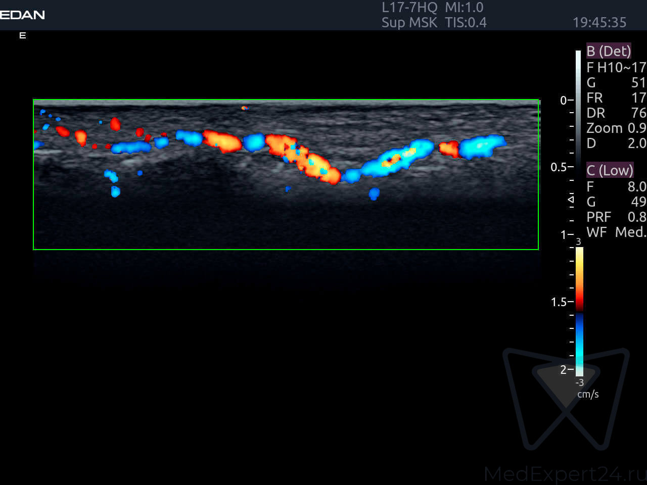 - Цветной Допплер: автоматическая оптимизация параметров для улучшения обнаружения границы, цветовой заливки и отображения гемодинамики,