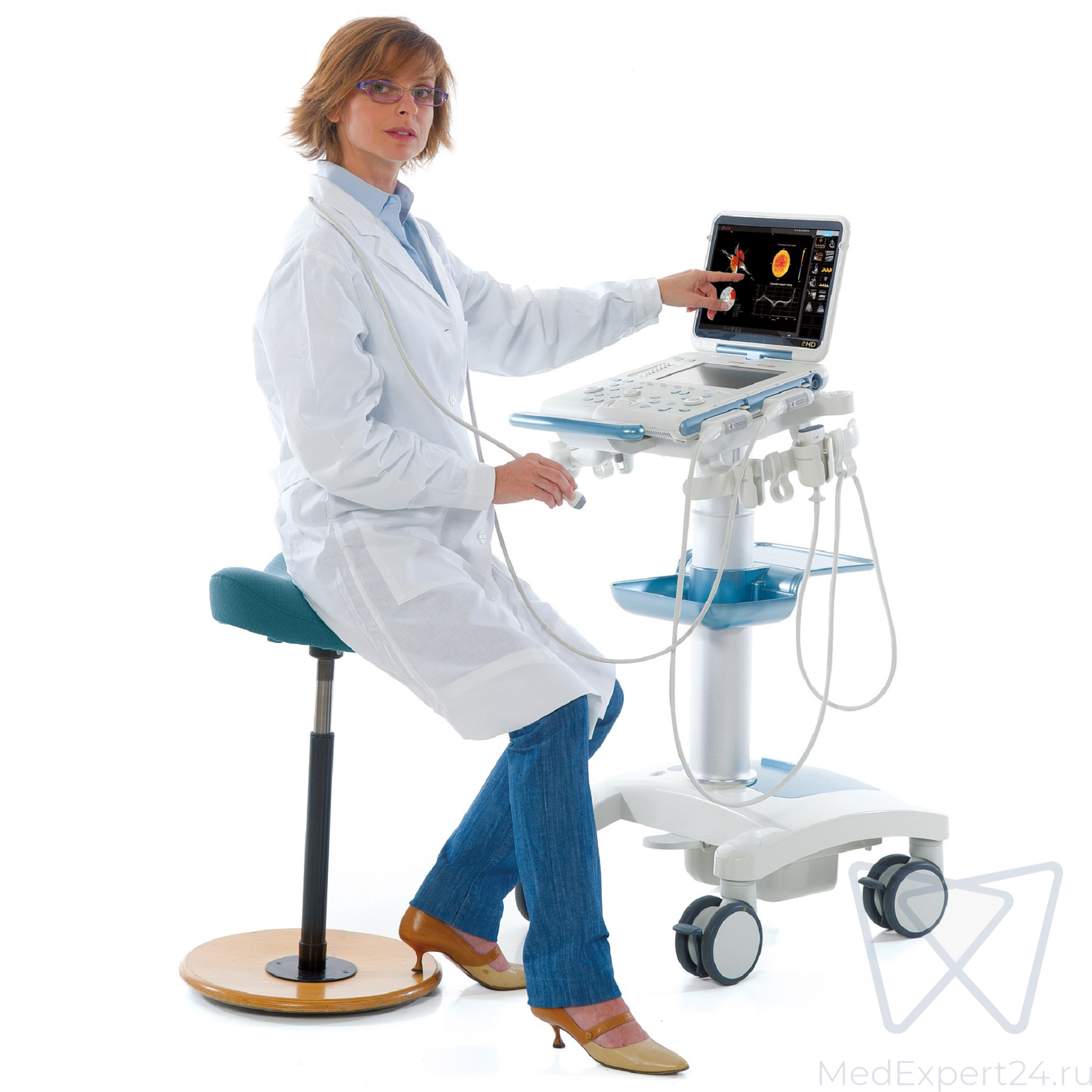 - Цветной узи сканер имеет медицинский широкоформатный экран, вращающийся в горизонтальной плоскости, 2 уменьшенных бесштырьковых коннектора (ZIFF) и сенсорный экран, встроенный в основную консоль,