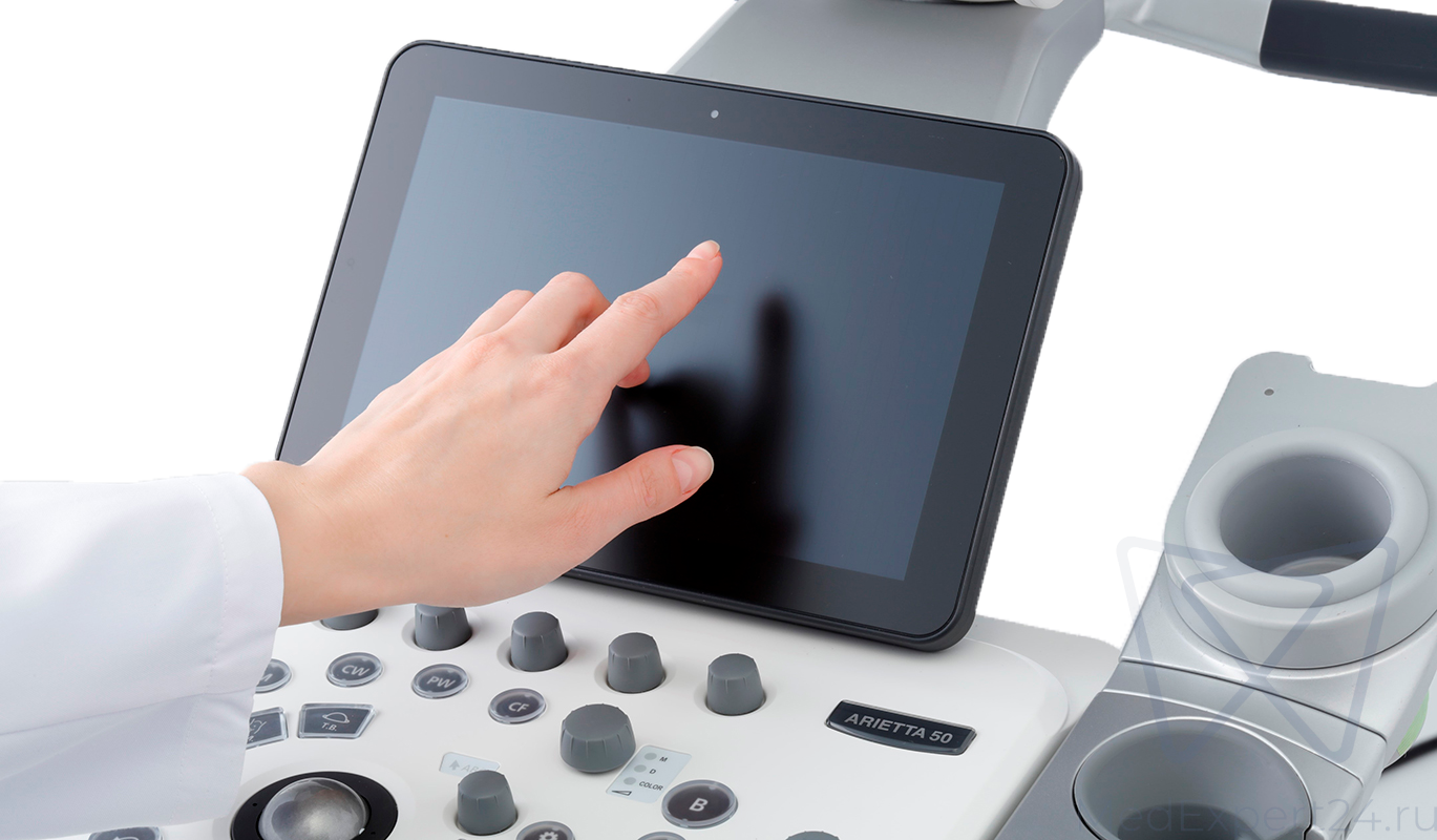 Модель Arietta 50le оснащена 4 разъемами для датчиков и гибким кронштейном для монитора, предлагает простое управление от новичков до экспертов. Интуитивно понятный рабочий процесс Arietta 50le, простые в использовании приложения и высокопроизводительные технологии визуализации.