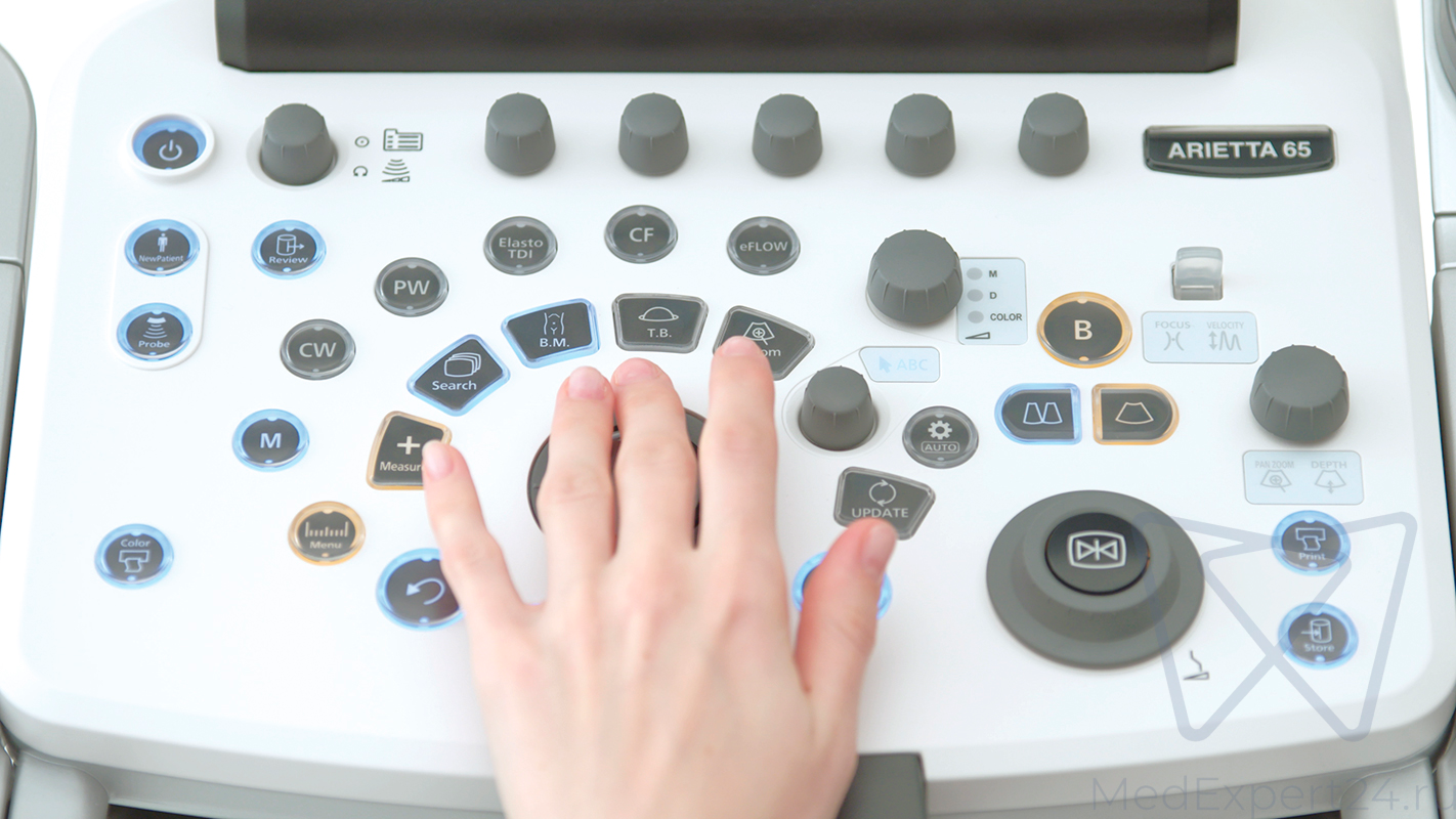 При длительном сканировании оператор может испытывать неудобства, связанные с неестественной позой во время проведения процедуры. При производстве ультразвуковой системы были учтены все нюансы работы с аппаратом. Панель с особой компоновкой кнопок и настраиваемый монитор со свободным позиционированием могут решить ряд проблем, с которыми сталкивается пользователь.