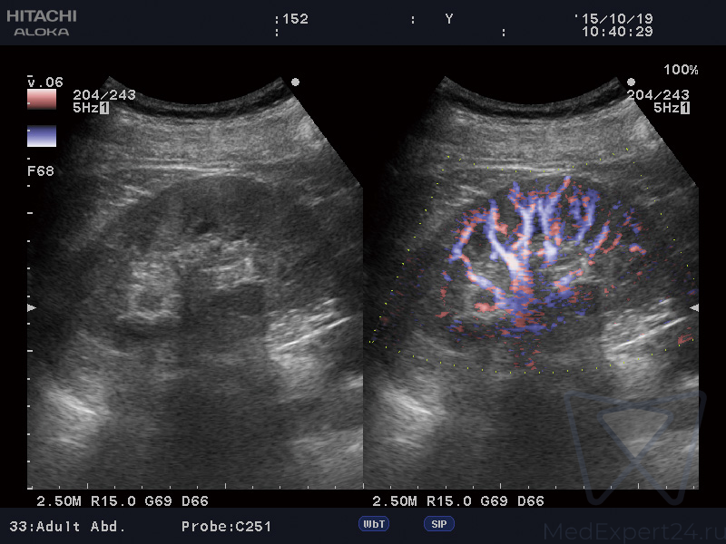 - EFlow обеспечивает двунаправленным картированием, предназначена для отображения кровотока,