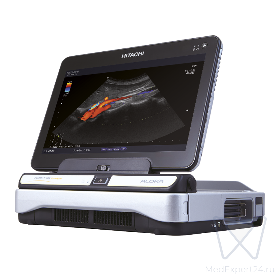 Переносной УЗИ сканер HITACHI ARIETTA Prologue разработан в качестве универсальной системы ультразвуковой диагностики для использования в условиях медицинского центра или на выезде к пациенту. Этот аппарат высокого класса включает как стандартные режимы, так и опции, характерные для престижных стационарных моделей.