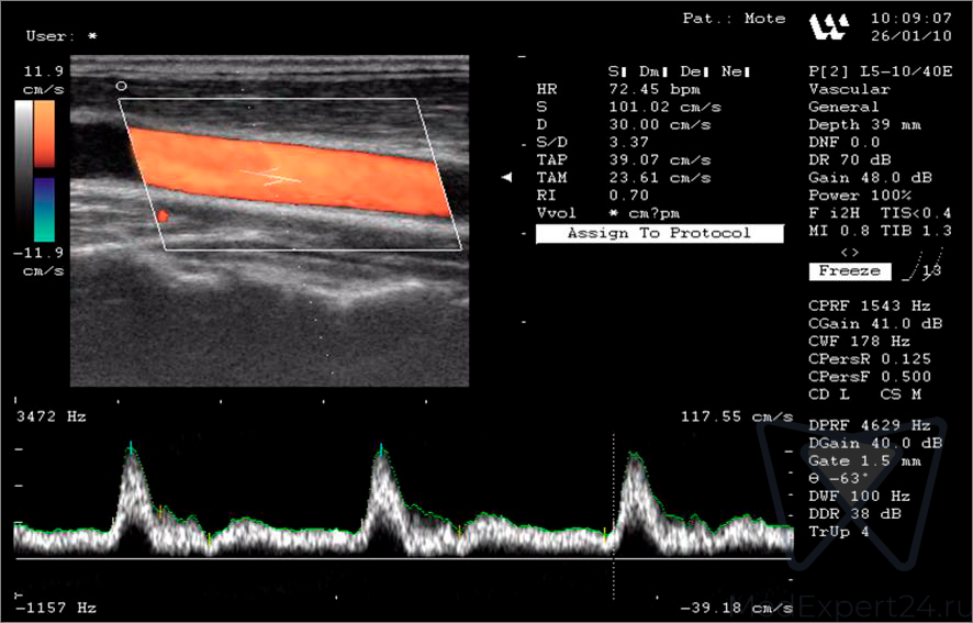 - PW-режим (Импульсно-волновой спектральный Doppler),