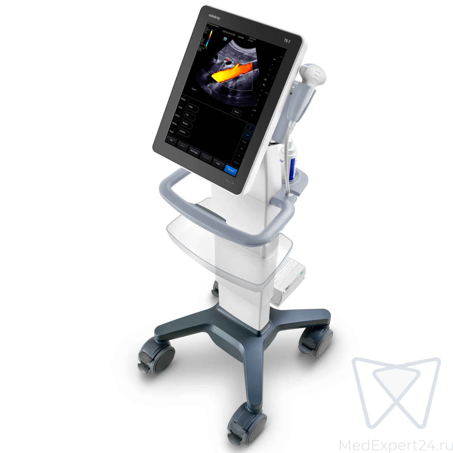 - Система для ультразвуковых исследований TE7 с сенсорным экраном обеспечивает высококачественную визуализацию и быстрое принятие решений о необходимых пациенту процедурах.