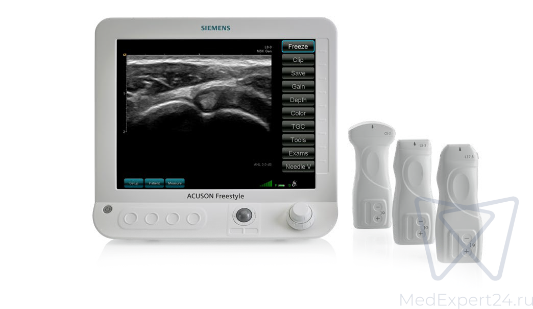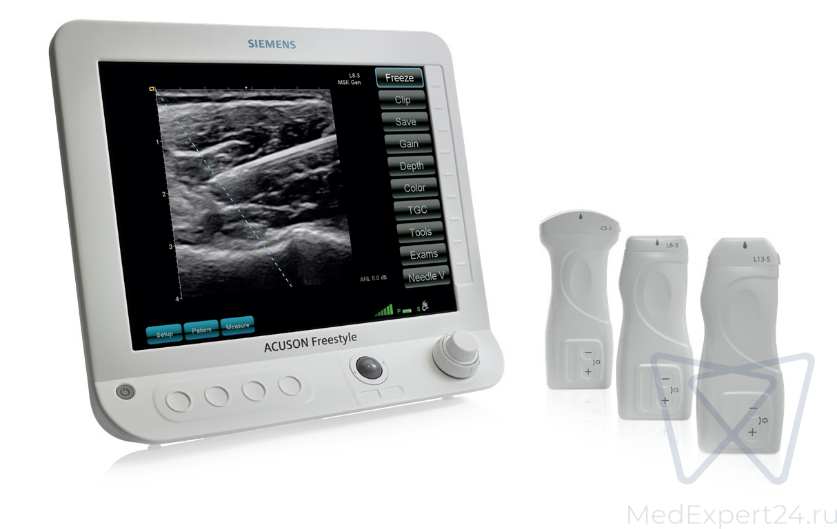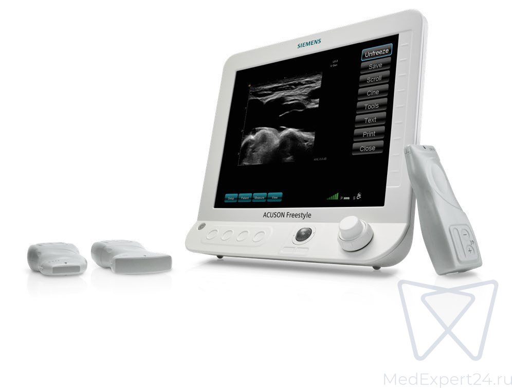 - Благодаря интегрированным элементам управления на датчике для работы с ACUSONFreestyleврачу-диагносту не требуется ассистент.