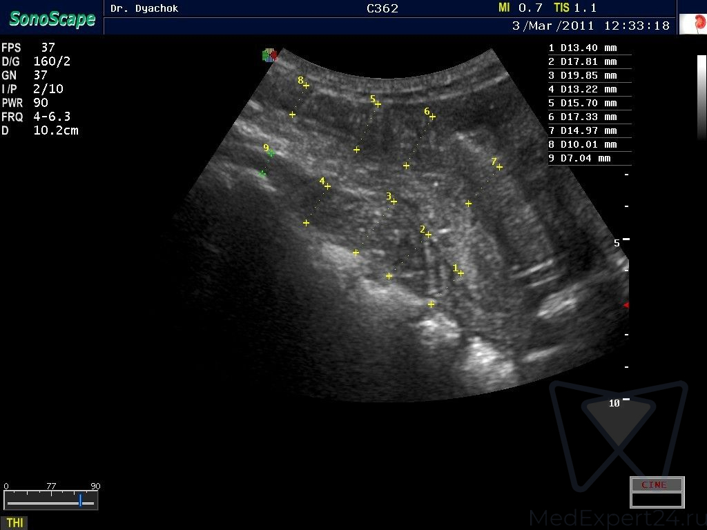 - Расчеты для акушерства, гинекологии, ангиологии, урологии, ортопедии, поверхностных органов, кардиологии, возможность оценки кардио-сосудистой системы, головного мозга плода, вывода кривых роста плода,