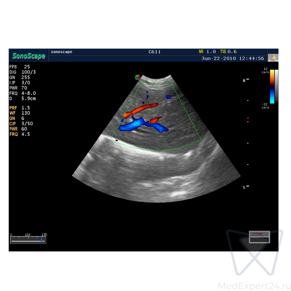 - Режим цветовой поток (CFM), энергетического допплеровского картирования (PDI), импульсно-волновой Допплер (PWD), цветной М-режим, непрерывная волна Doppler (CWD),