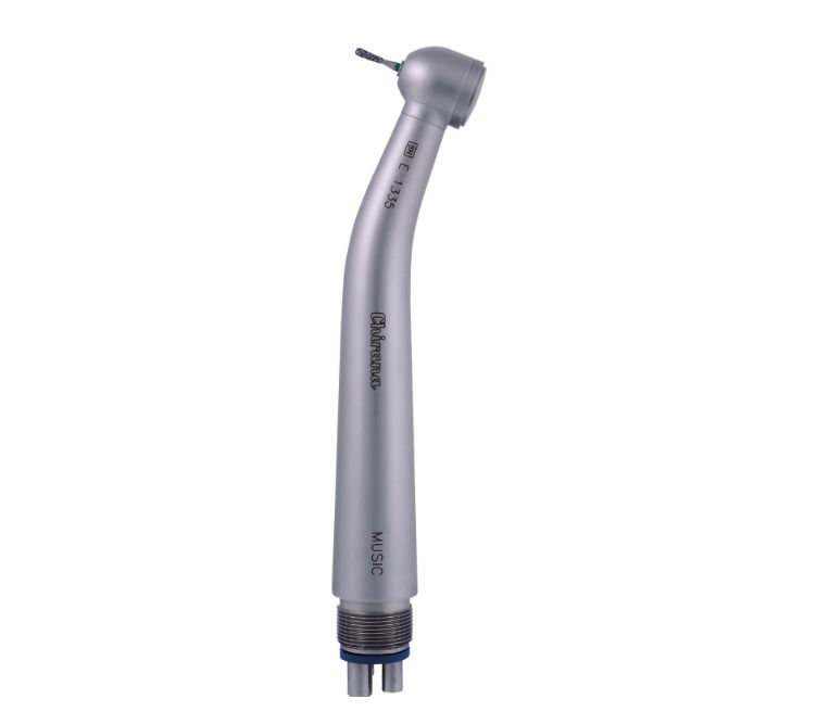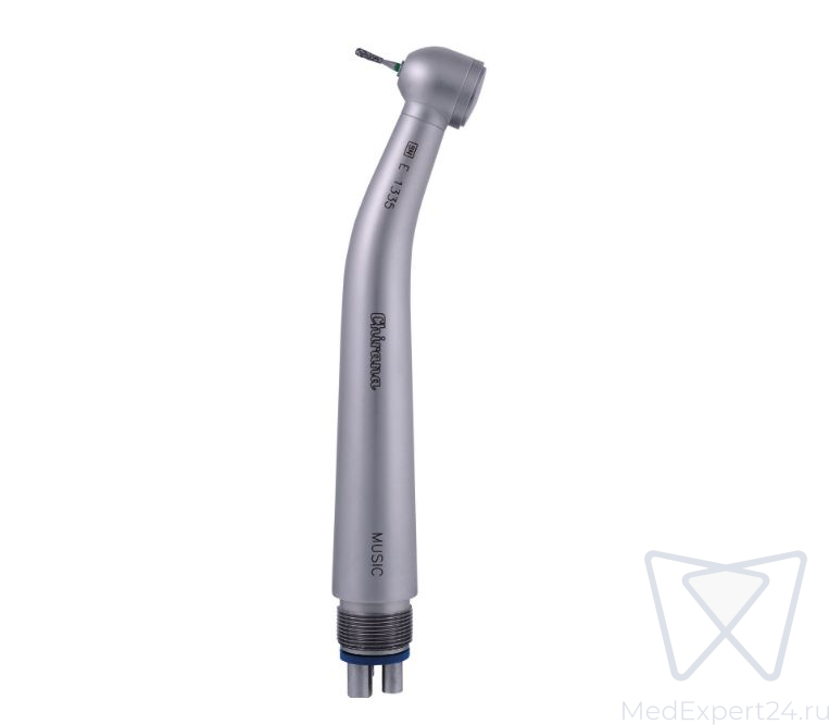 Мощный турбинный наконечник без подсветки с кнопочным зажимом для боров, с боковой струйной системой охлаждения препарационного инструмента.
