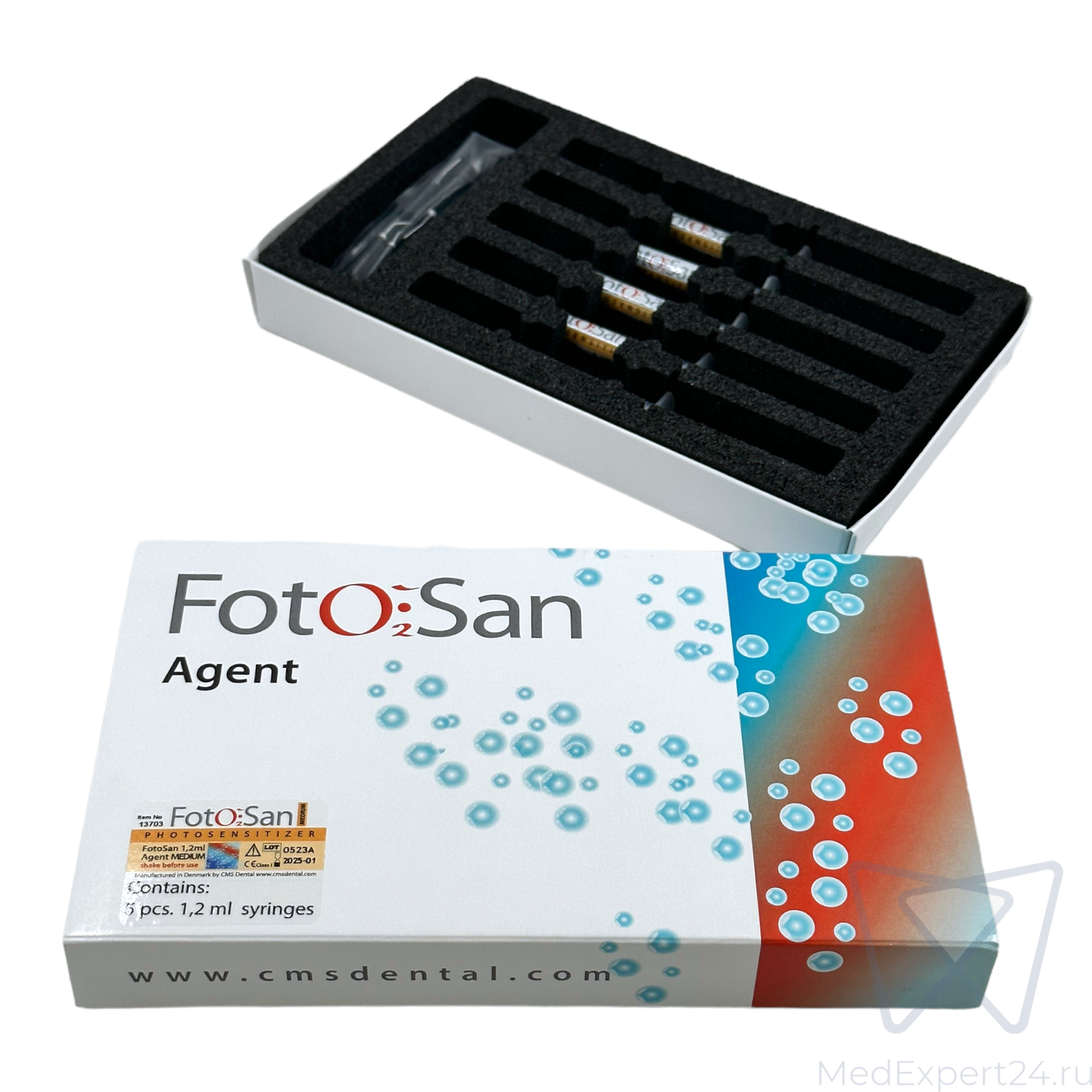 - FotoSan LOW - низкая вязкость. Применяется для эндодонтической терапии при подготовке и промывке корневого канала. Выпускается в форме флаконов по 6 мл и шприцев по 1.2 мл.