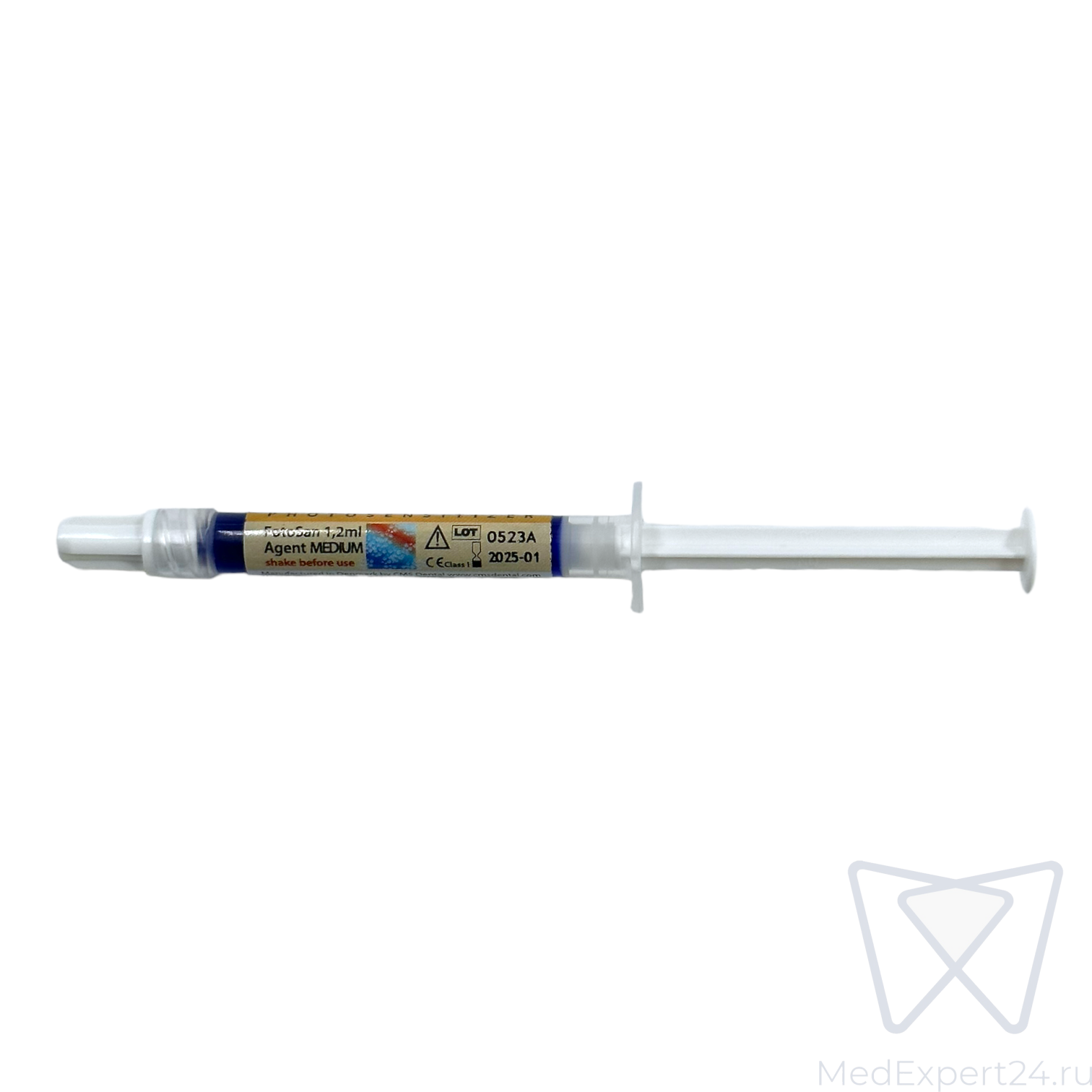 - FotoSan MEDIUM – средняя вязкость. Используется в процессе лечения гингивита, а также терапии периодонтальных карманов или полостей с глубоким кариесом. Также доступен в форме флаконов по 6 мл и шприцев по 1.2 мл.