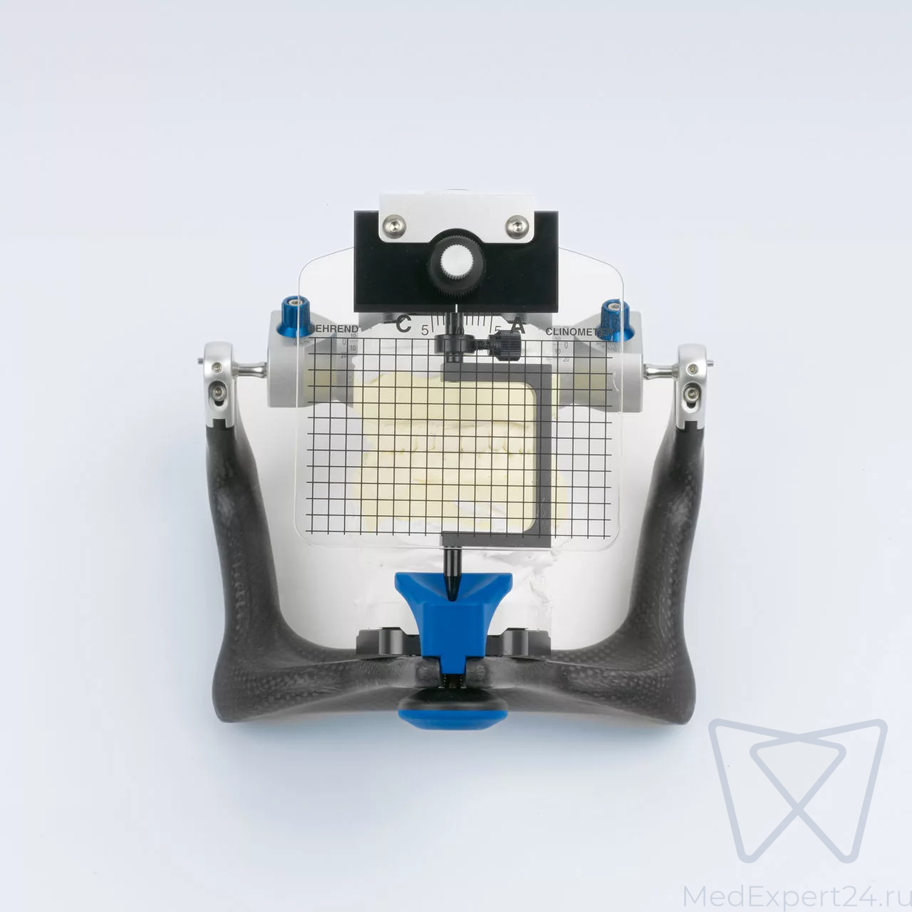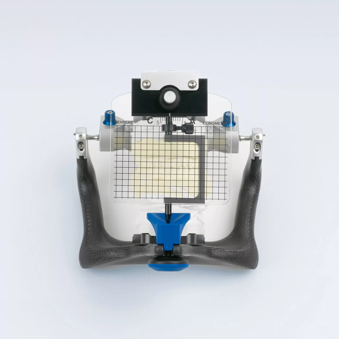 Регулируемая пластинка из плексигласа, на которую нанесены многочисленные вертикальные и две горизонтальные линии для передачи физиогномических эстетических параметров. После адаптации к лицевой дуге горизонтальные линии настраиваются поворотной ручкой в соответствии со зрачковой линией и линией улыбки пациента. Выявленное положение зубов отображается как угол и переносится вместе с лабораторным аналогом для постановки фронтальных зубов в артикулятор.