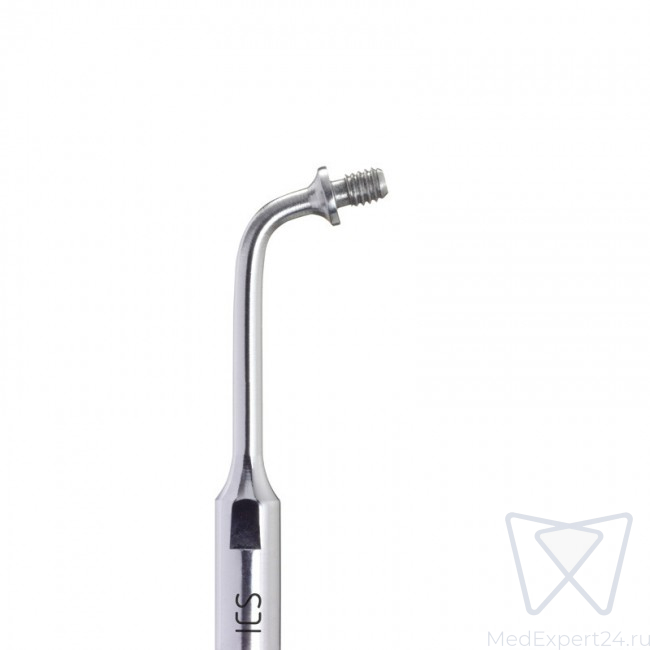 Держатель насадки изогнут под углом 102°. Предназначен для использования с насадкой IC1 с основанием конусной формы из полиэфиркетона (PEEK), длина рабочей части 10 мм, диаметр апикальной части 0,8 мм, диаметр коронковой части 2 мм).