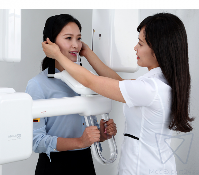 Система автоматического позиционирования, калибруемая по трем осям, автоматически подготавливает аппарат к исследованию устанавливая подбородочный упор аппарата в требуемое положение. Вам не требуется тратить время на позиционирование пациента.