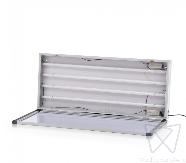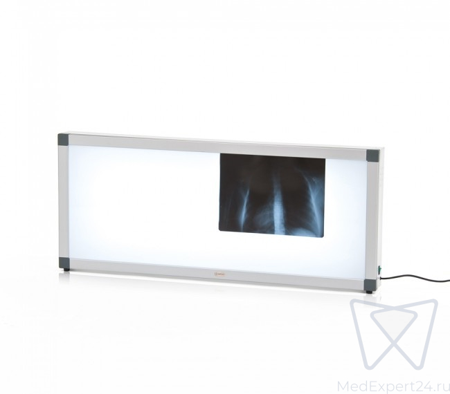Данная модель отличается светодиодным освещением. Внутри корпуса установлены 12 LED-линеек, которые обеспечивают яркое свечение. Благодаря смотровому экрану из прочного матового акрилового стекла, свет рассеивается равномерно, позволяя комфортно читать рентгенограммы.