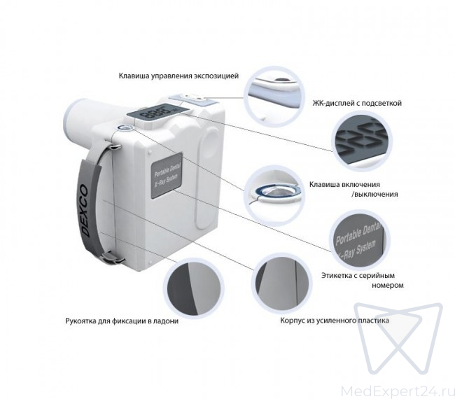 Легкий и компактный портативный рентген-аппарат от корейской компании «Dexcowin». Совместим с любыми типами визиографов и пленки.