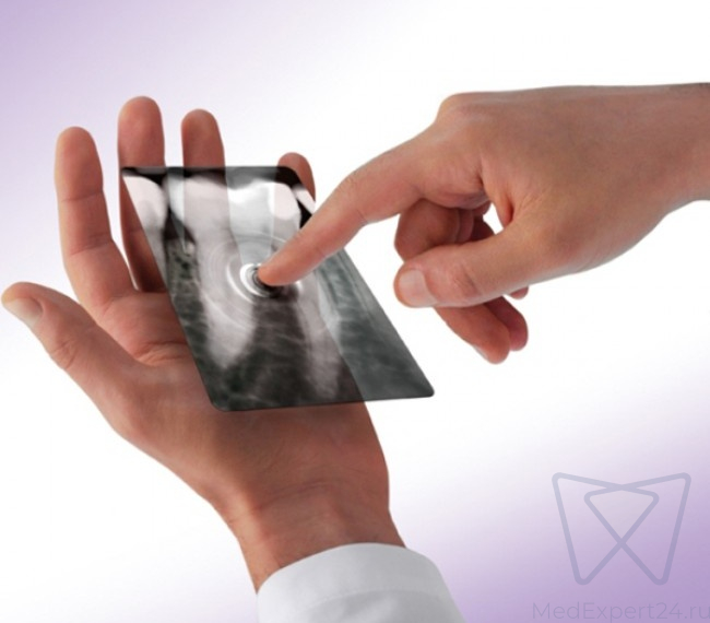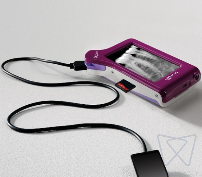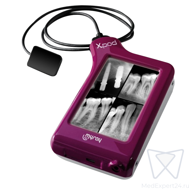 Компактное медицинское устройство MyRay X-pod, мгновенно получающее и обрабатывающее рентгеновские снимки высокого качества, находясь непосредственно на вашей ладони.