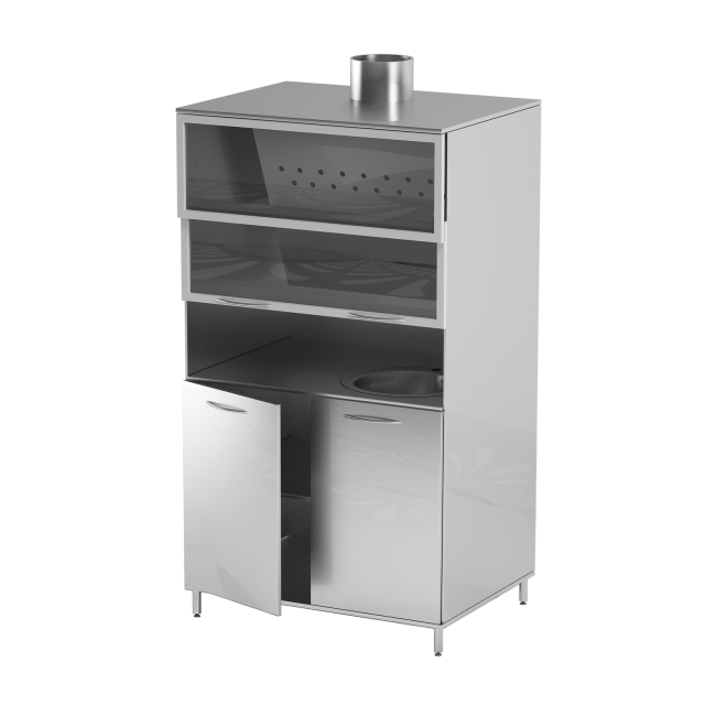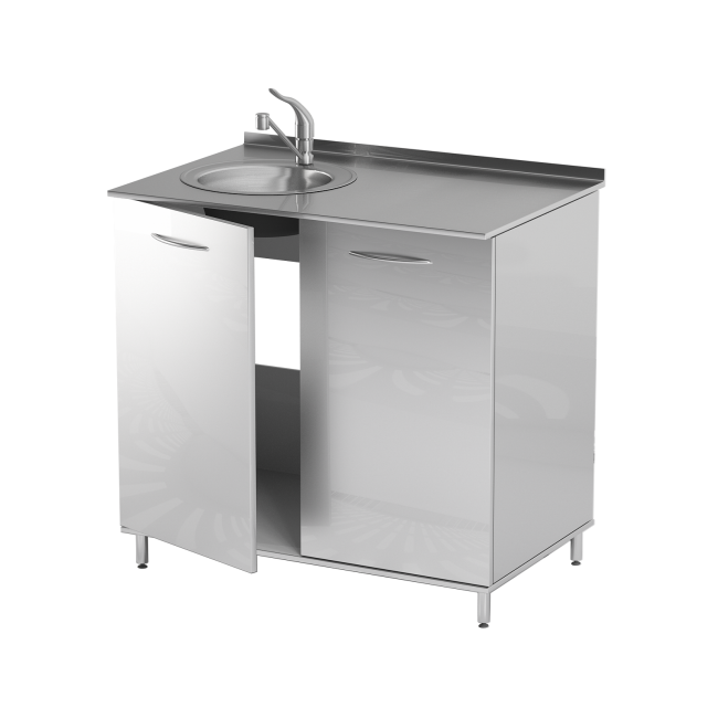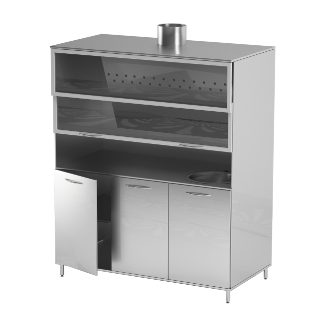 AT-S51 - шкаф вытяжной, нержавеющая сталь, с тройной розеткой и смесителем, 2 тумбы