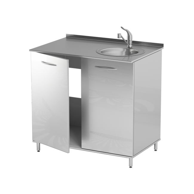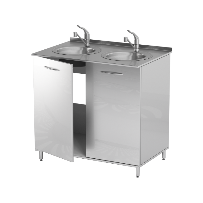 AR-24 - тумба напольная с двумя накладными мойками и двумя смесителями, нержавеющая сталь