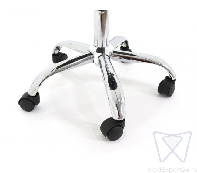 Стул имеет возможность регулировки высоты - вы можете менять ее в зависимости от проводимой процедуры. Стул установлен на пятилучье, которое делает всю конструкцию устойчивой и надежной. Небольшие колесики позволят передвигать его туда, куда вам необходимо, и при этом не царапают пол, обеспечивая мягкое и плавное движение