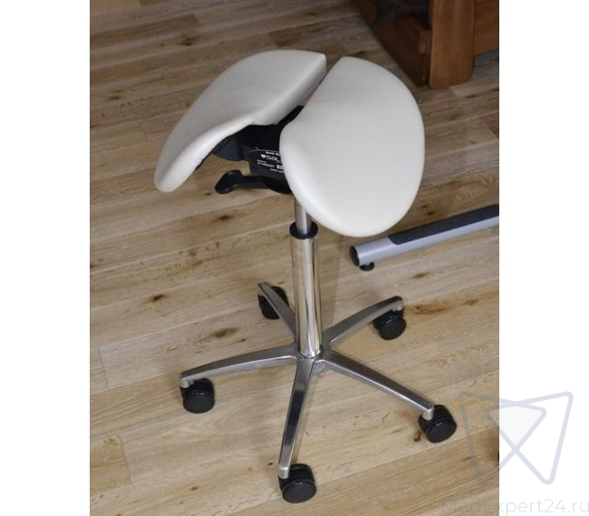 На стуле-седле человек не сидит полностью, а занимаем промежуточное положение между стоячим и сидячим. При этом угол между бедром и позвоночником получается около 135 градусов, а ноги расставлены в стороны. Это поза наездника, самая естественная для человека среди всех сидячих поз.