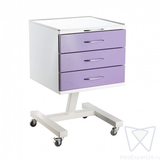 СИПС-М-01 имеет четыре ящика на опоре, сверху полка из стекла. По желанию заказчика, так же в столике можно сделать три выдвижных ящика. Опора имеет четыре колеса из серой резины Ø50 мм. Столик может использоваться отдельно, а так же отлично сочетаться с набором мебели На выбор можно подобрать другую цветовую палитру панели ящиков.