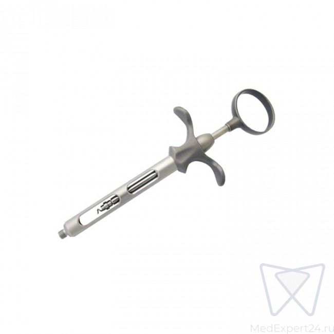 Шприц карпульный для применения современных анестетиков, помещенных в специальные картриджи. Простой и удобный для использования одной рукой. Корпус цилиндрической формы с двумя прорезями для размещения карпулы и контроля над использованием анестетика и аспирационной пробой. Для удобства использования передняя часть корпуса имеет срез, а ниппель с резьбой для подсоединения иглы наклон относительно корпуса. Шток выполнен в виде стержня. На одном конце штока имеется острие (плунжер) в виде спирального крючка для проведения аспирационной пробы. На другом держатель в виде кольца для большого пальца для лучшего удержания шприца одной рукой. Используется с любыми карпульными иглами европейского стандарта.