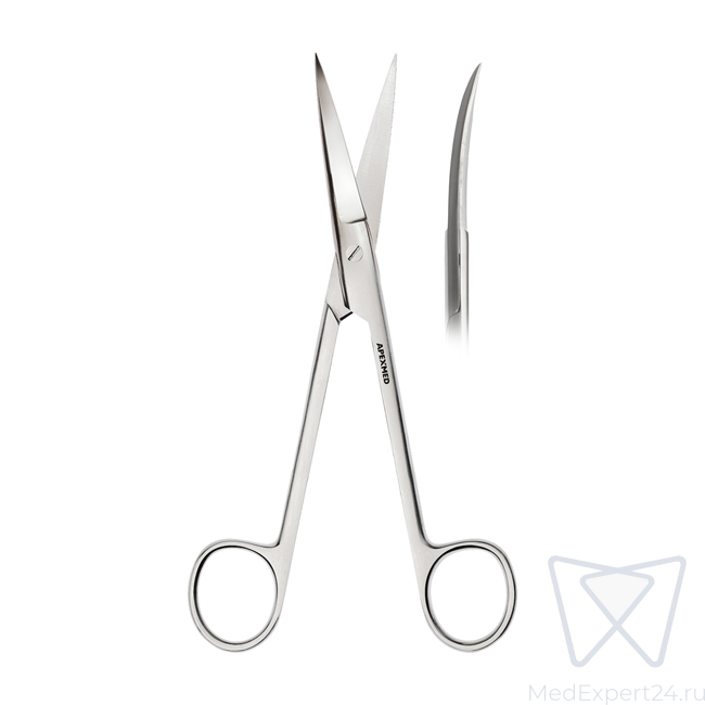 Ножницы хирургические изогнутые Joseph, остроконечные, длина 140 мм | Apexmed
