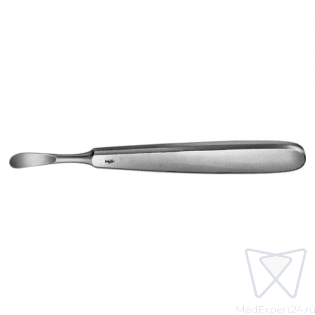 OM311R - распатор по Trelat, изогнутый, используется при проведение хирургических операций, требующих отделения надкостницы от кости. Инструмент изготовлен из высококачественной нержавеющей стали, имеет плоскую рукоятку с четырьмя гранями, благодаря которой надежно фиксируется в руке и не выскальзывает во время работы. Длина 150 мм