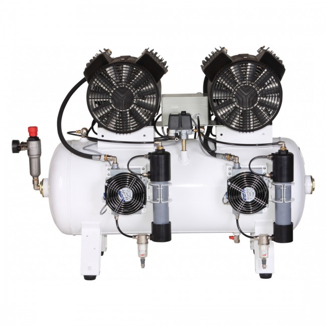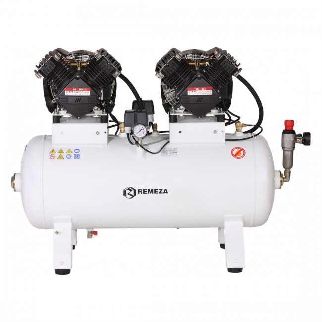 Remeza КМ-100.VS204ТД - безмасляный компрессор для 4-х стоматологических установок, с осушителем мембранного типа, с ресивером 100 л, 286 л/мин