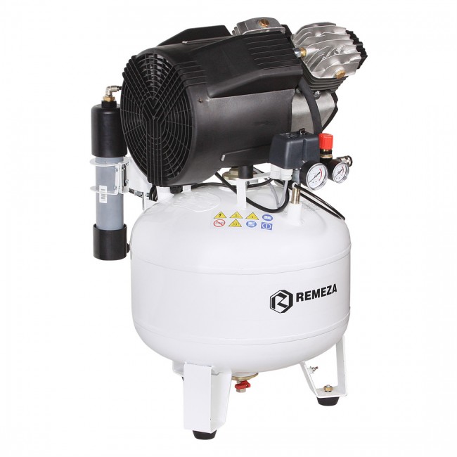 Remeza КМ-16.VS204К - безмасляный компрессор для 2-х стоматологических установок, без осушителя, с кожухом, с ресивером 16 л, 165 л/мин