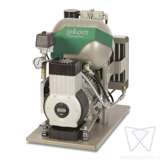 Безмасляный компрессор EKOM серии DK50-10 является источником чистого, безмасляного сжатого воздуха, предназначенного для приведения в движение зубоврачебных приборов и устройств. По своим техническим параметрам и размерам резервуара воздуха объемом в 10 л он является очень удобным для питания самостоятельной сто-матологической установки или комплекта оборудования зубопротезной лаборатории. Сжатый воздух, производимый безмасляным компрессором указанного типа, обеспечивает высокую степень соблюдения гигиены и качества труда стоматолога, не создавая, притом, вокруг себя среду, содержащую чужеродные вещества.