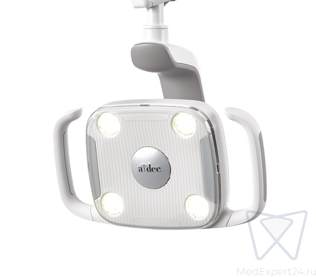 - Диодный бестеневой светильник A-Dec 571L-300 с креплением на гидроблоке. 4 режима освещенности 15000/25000/30000 Люкс, в том числе режим композитного света 25000 Люкс с фильтром.