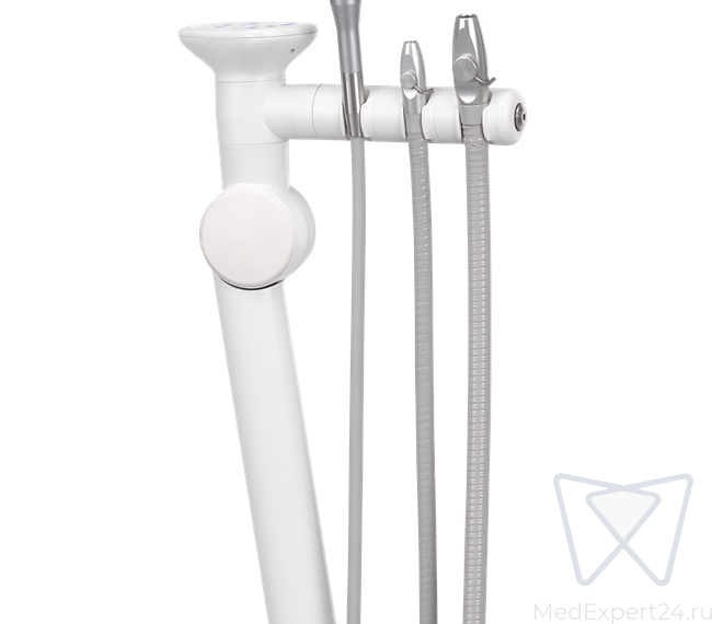 Специальная штанга автоматического держателя инструментов ассистента в вертикальной и горизонтальной плоскостях на коротком рукаве. Инструменты ассистента: слюноотсос и пылеотсос под вакуумную помпу, автоклавируемый пистолет вода/воздух/спрей. Сенсорный пульт управления креслом, светильником гидроблоком.